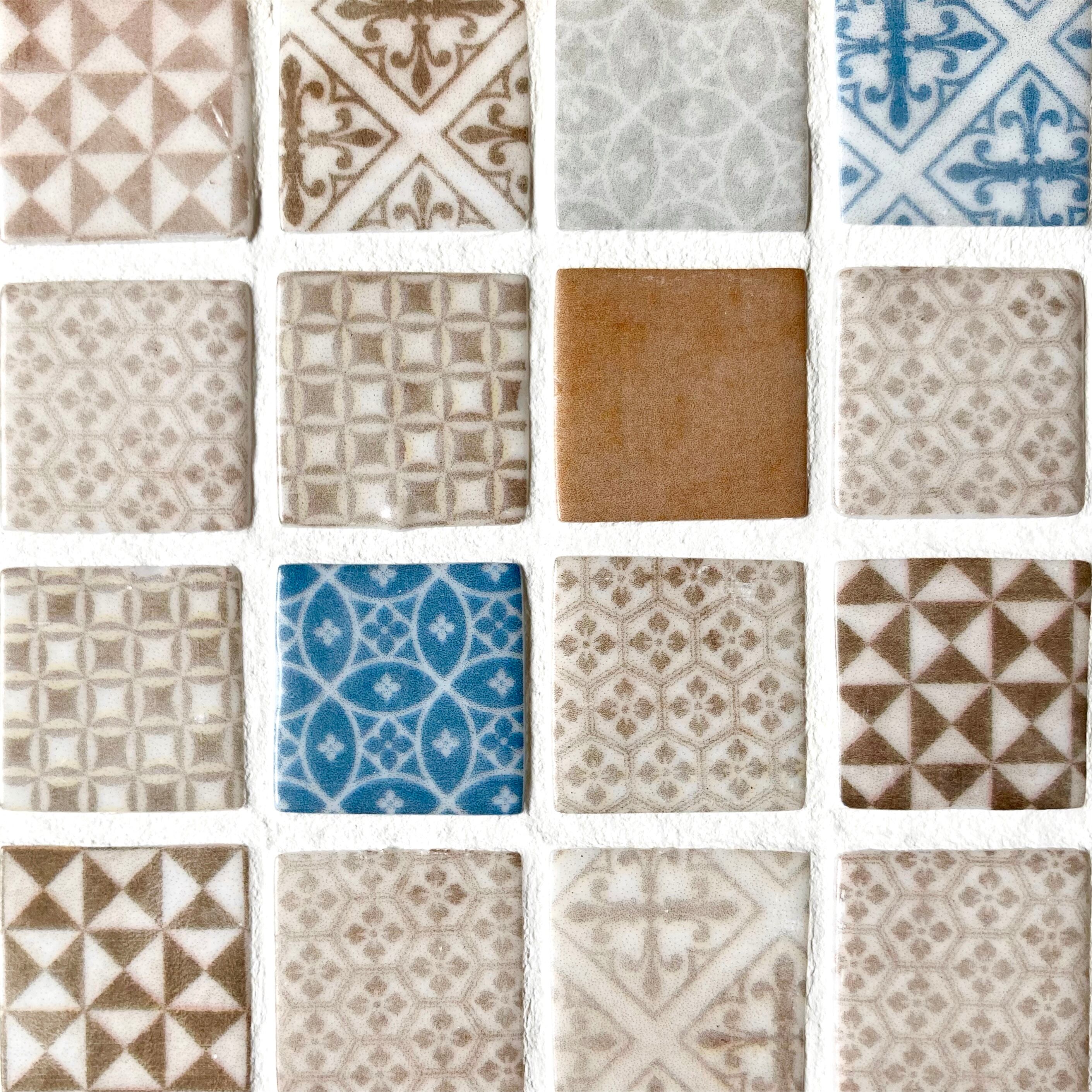 •タイルの在庫状況に合わせて、全体のバランスを考慮しながら配置する柄をお写真のものと一部変更させて頂く場合があります。お色につきましては、全枚数お写真のものと同じとなりますので、全体イメージが損なわれることはありません。